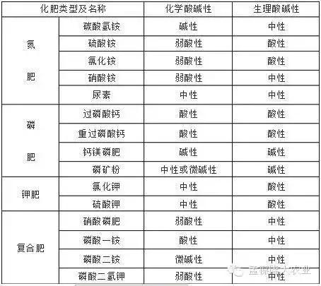 常用化(huà)肥的化(huà)學酸堿性和生(shēng)理(lǐ)酸堿性